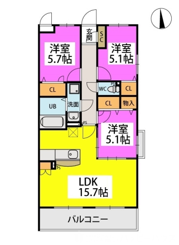 2階/3LDK/70.91m²