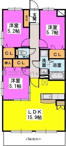 3階/3LDK/70.91m²