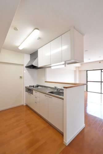 ガスコンロ付/都市ガス/洗浄便座/風呂・トイレ別/オートロック/BS/防犯カメラ/駐輪場/インターネット無料/カウンターキッチン/システムキッチン/シャンプードレッサー/室内洗濯機置場/バルコニー/フローリング/角部屋/室内物干し/モニター付インターホン/エアコン/エレベータ無し/追い炊き風呂
