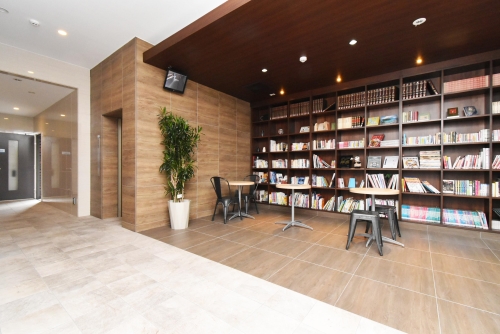 宅配ボックス、オートロック付!エントランスに本棚があり内装もオシャレな物件になります!