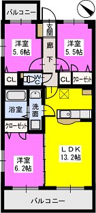 3階/3LDK/68.32m²