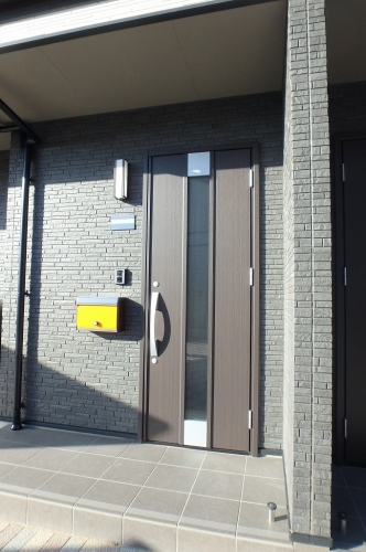玄関ドアにカラーの郵便受け♪