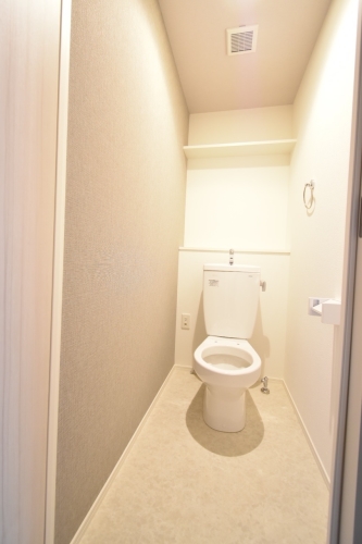洗浄便座完備・収納棚付き。