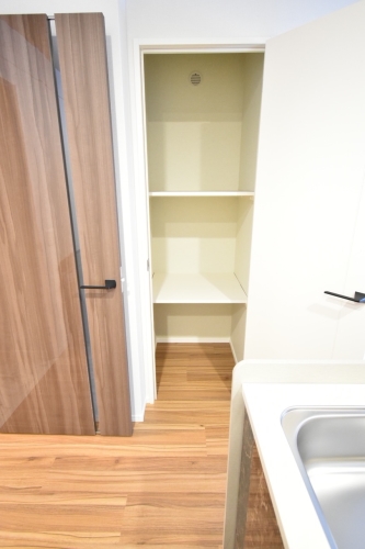 キッチン横に多様性ある収納スペース付。