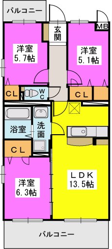 3階/3LDK/67.89m²