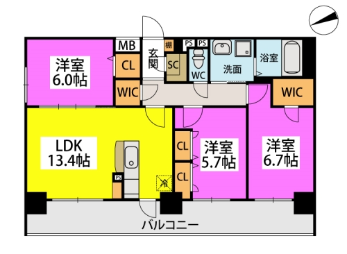 2階/3LDK/74.90m²