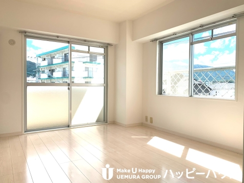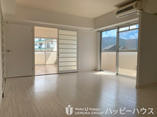 角部屋で明るいです。リビングにエアコン(サービス設置品)がついています。